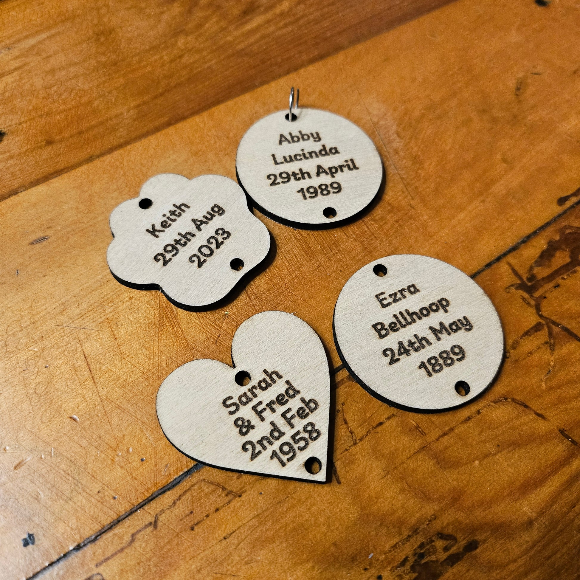 Underneath, hang our charming wooden tiles to mark your special occasions:
