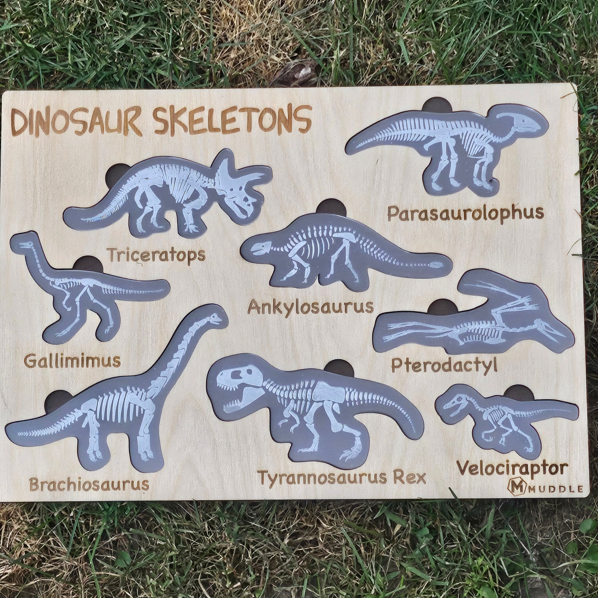 Piece together the past with our Dinosaur Skeleton Puzzle! Featuring a clear acrylic base with etched dinosaur designs and a sturdy wooden frame, this puzzle is perfect for any dino lover. Unleash your inner paleontologist (or just have fun!) with this unique and playful puzzle!
