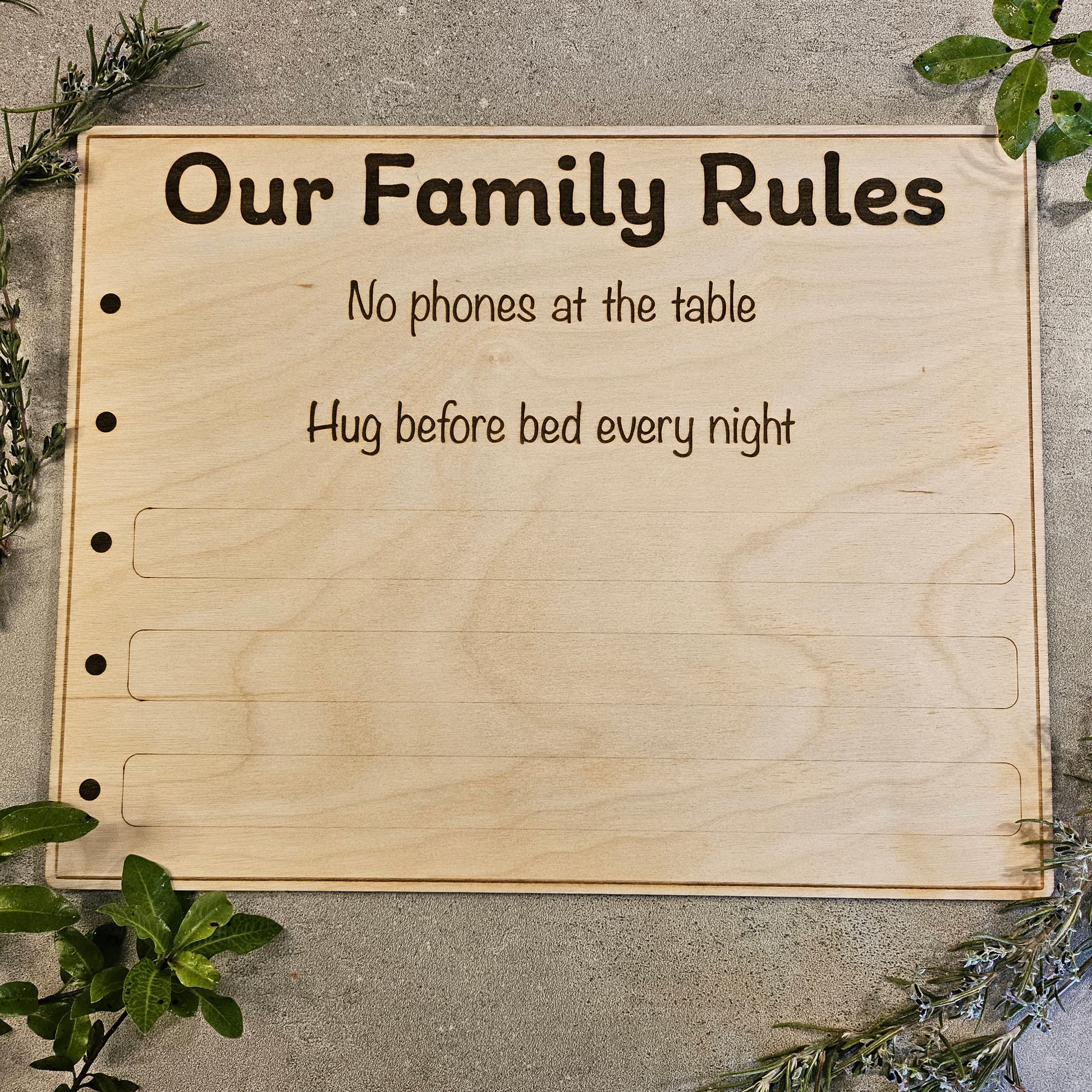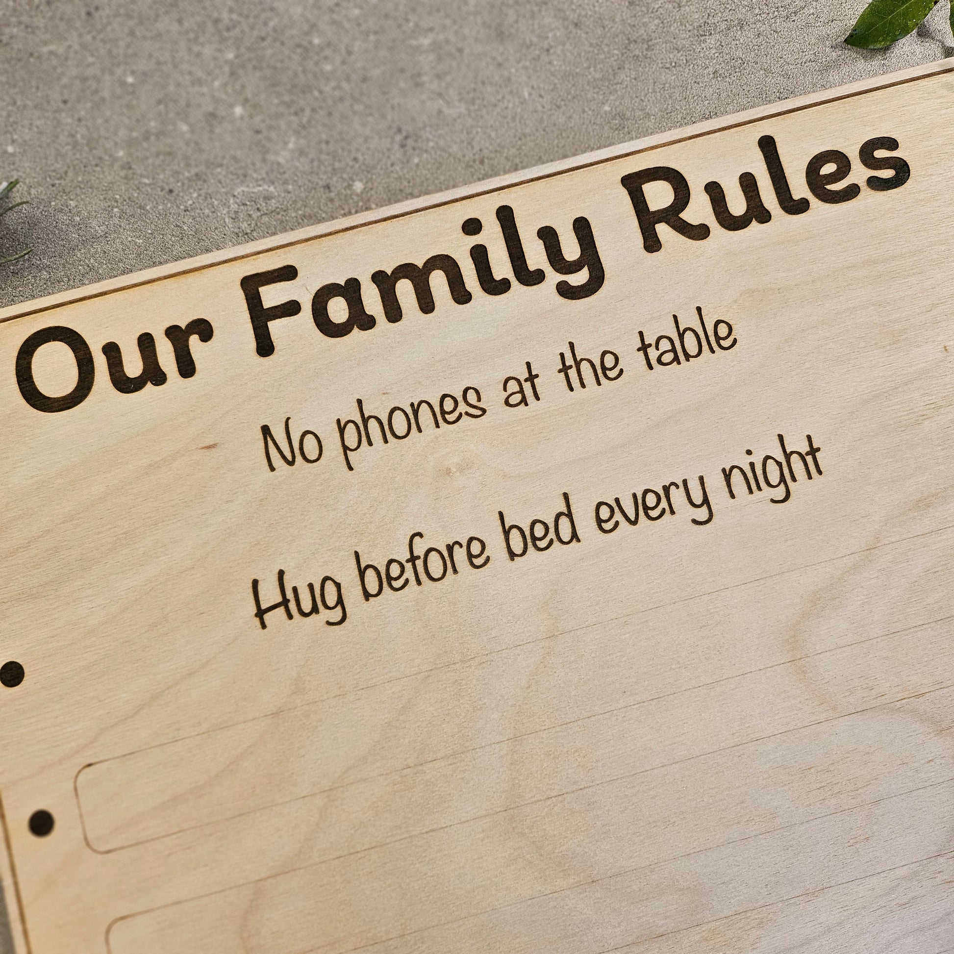 Add a playful touch to your home with these Family Rules displayed on beautiful birch wood. Choose between laser-engraved permanent rules or acrylic tiles that let you write, erase, and update your family guidelines whenever you like. Perfect for keeping everyone smiling and on the same page in a fun, flexible way!
