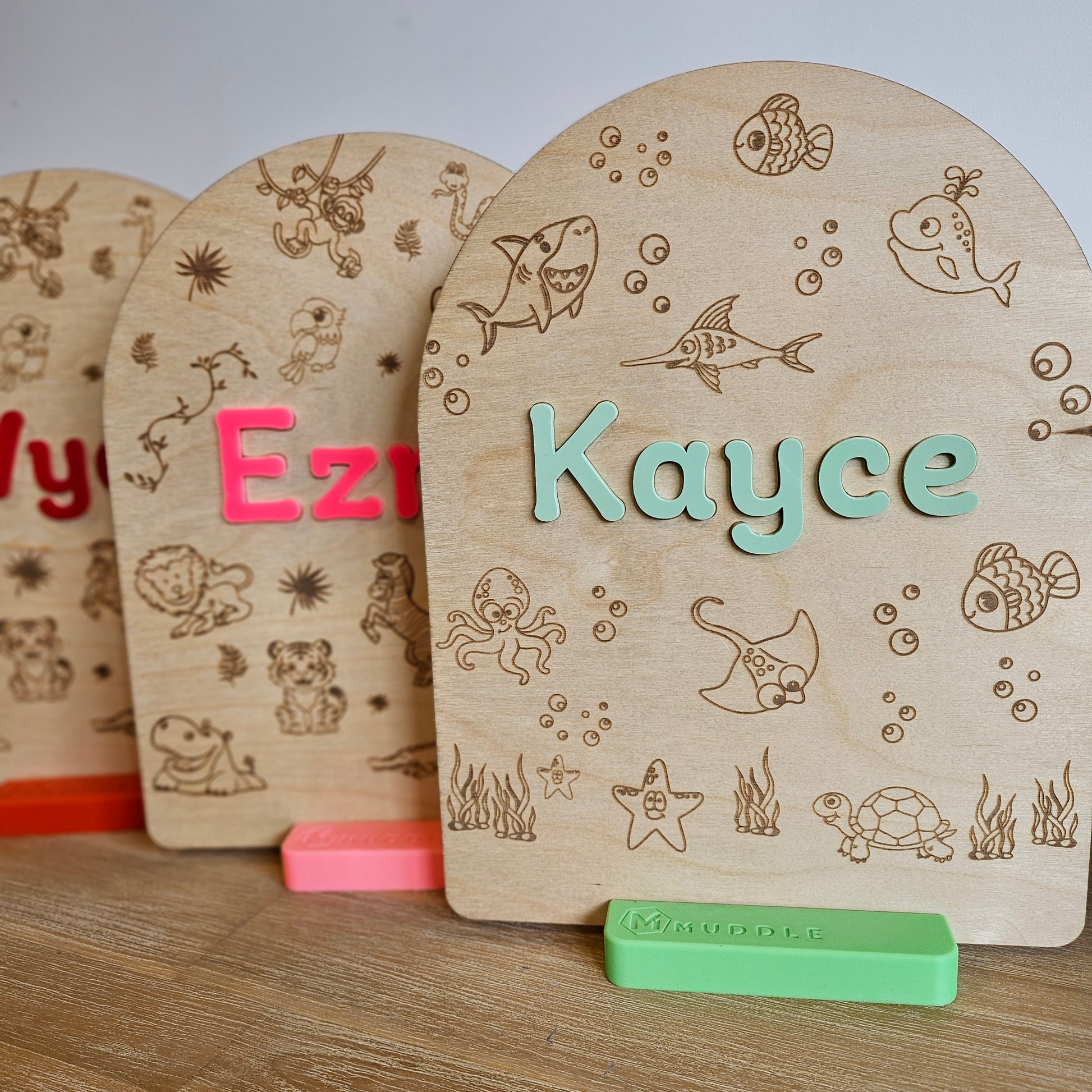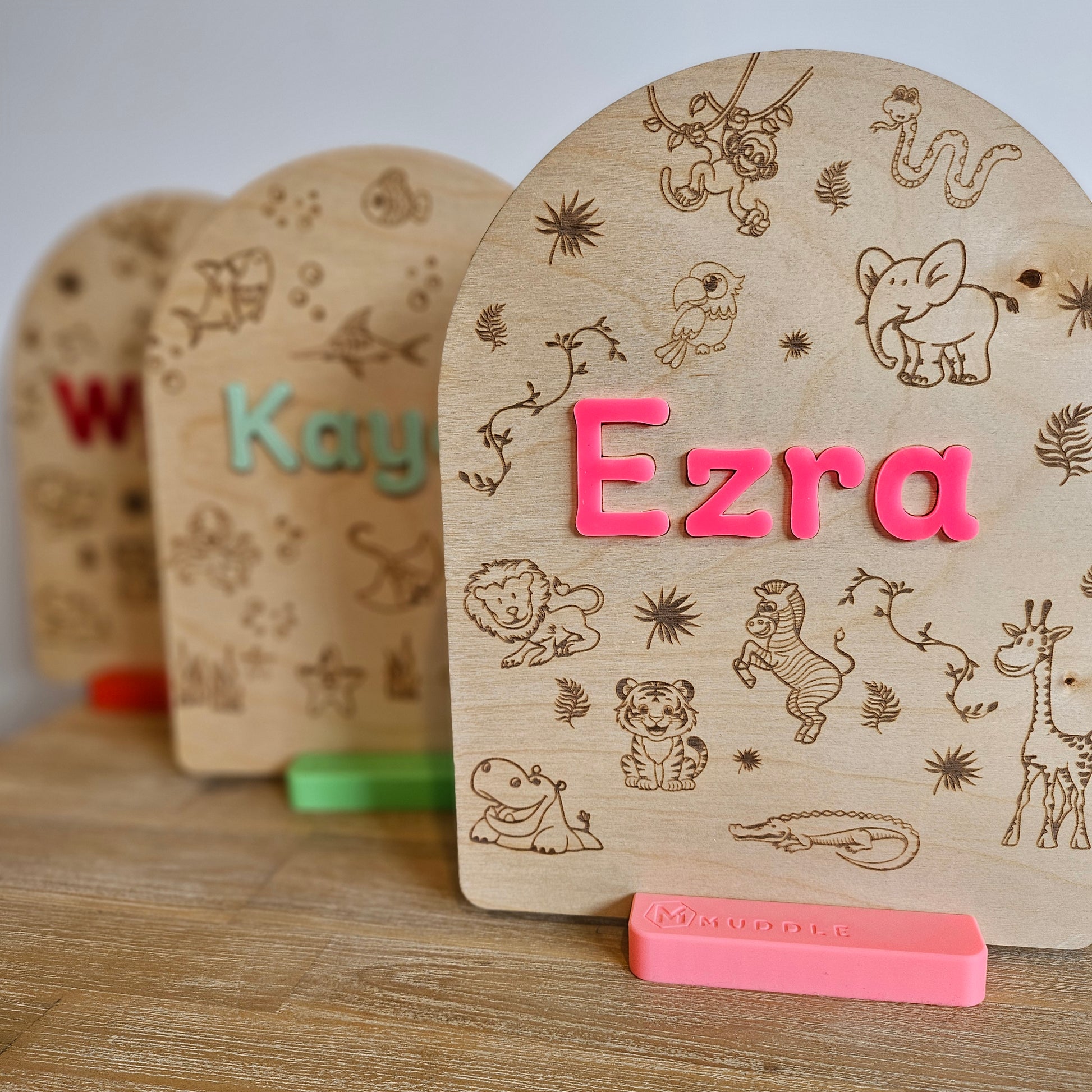 Celebrate your bundle of joy with our Personalised Baby Sign! Choose from laser designs of under the sea, flowers or jungle, and add all the important details like date, time, height, weight, and name. Comes with a 3d printed stand in your choice of colour, and an acrylic name. A lovely keepsake.