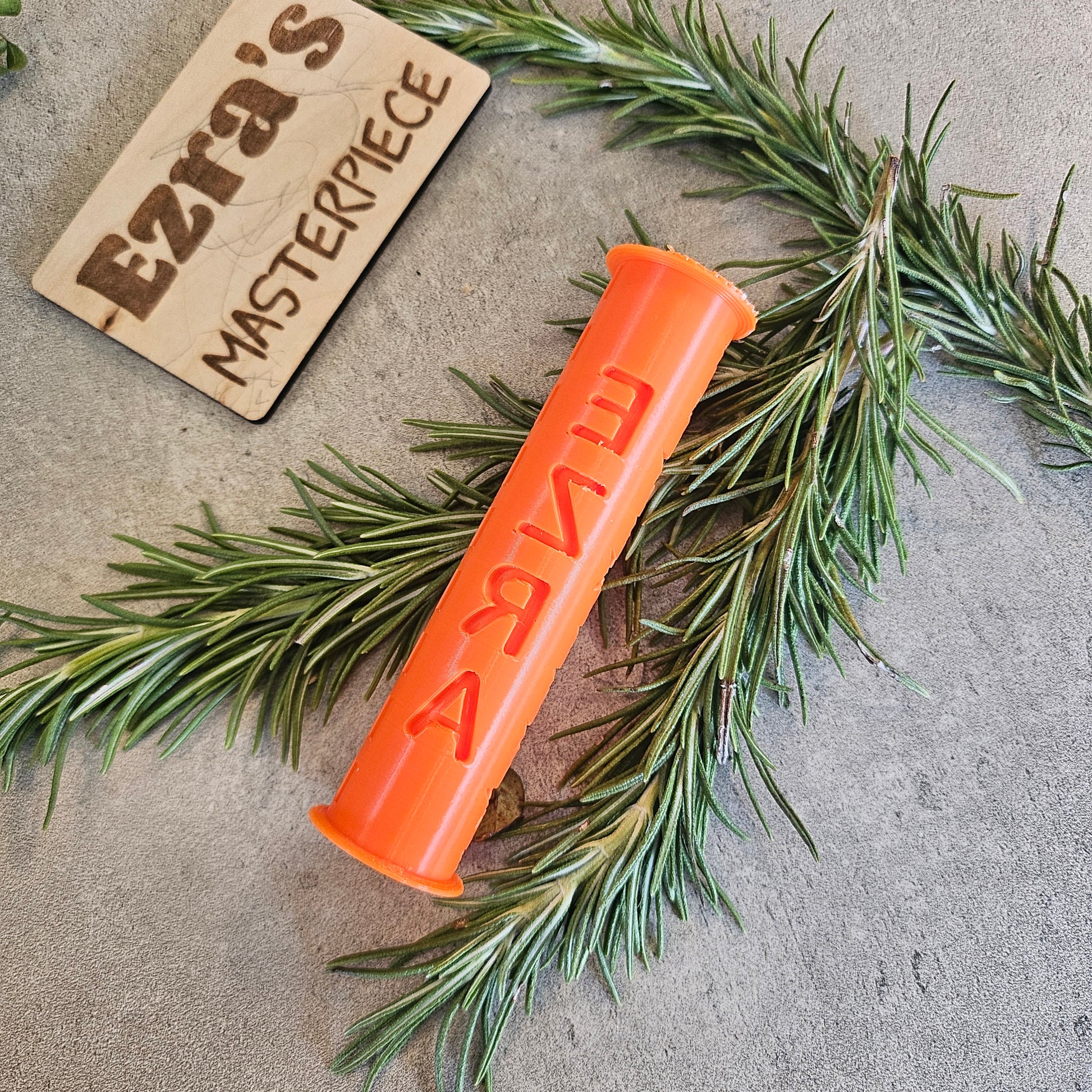 Add a fun and personal touch to your creative playtime or baking with this personalised playdough and cookie roller. It imprints your chosen name alongside playful swiggle, star, and brick line patterns, making every creation uniquely yours. Perfect for little hands and imaginative moments! Comes in a range of colours.