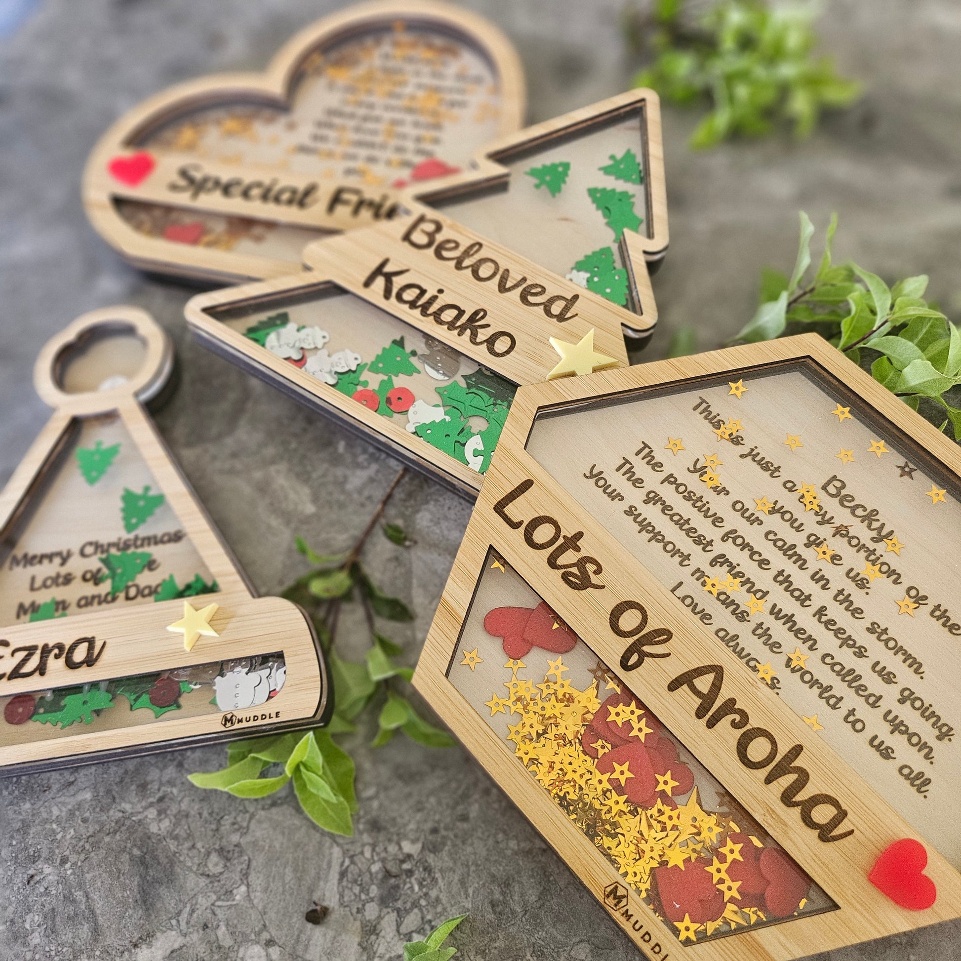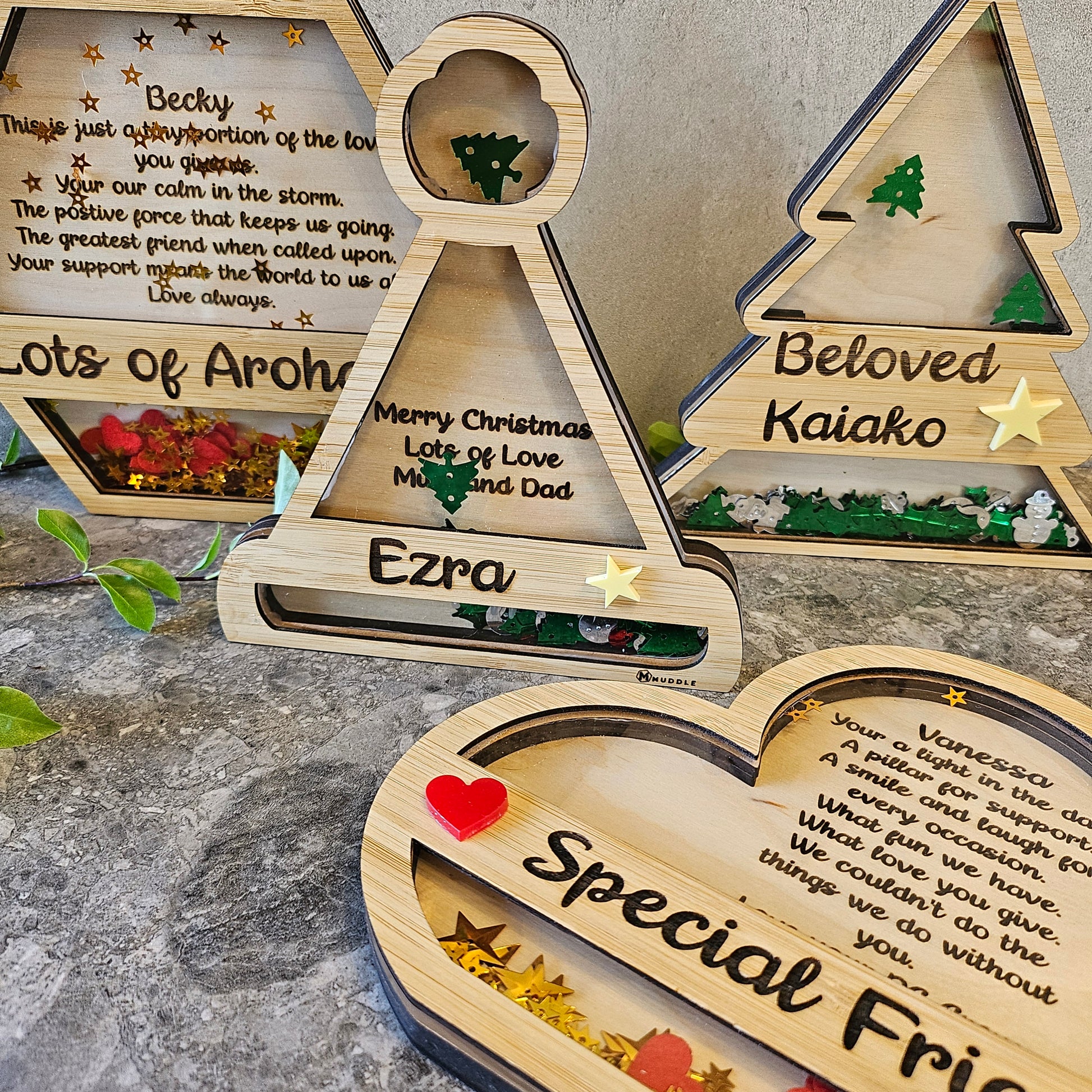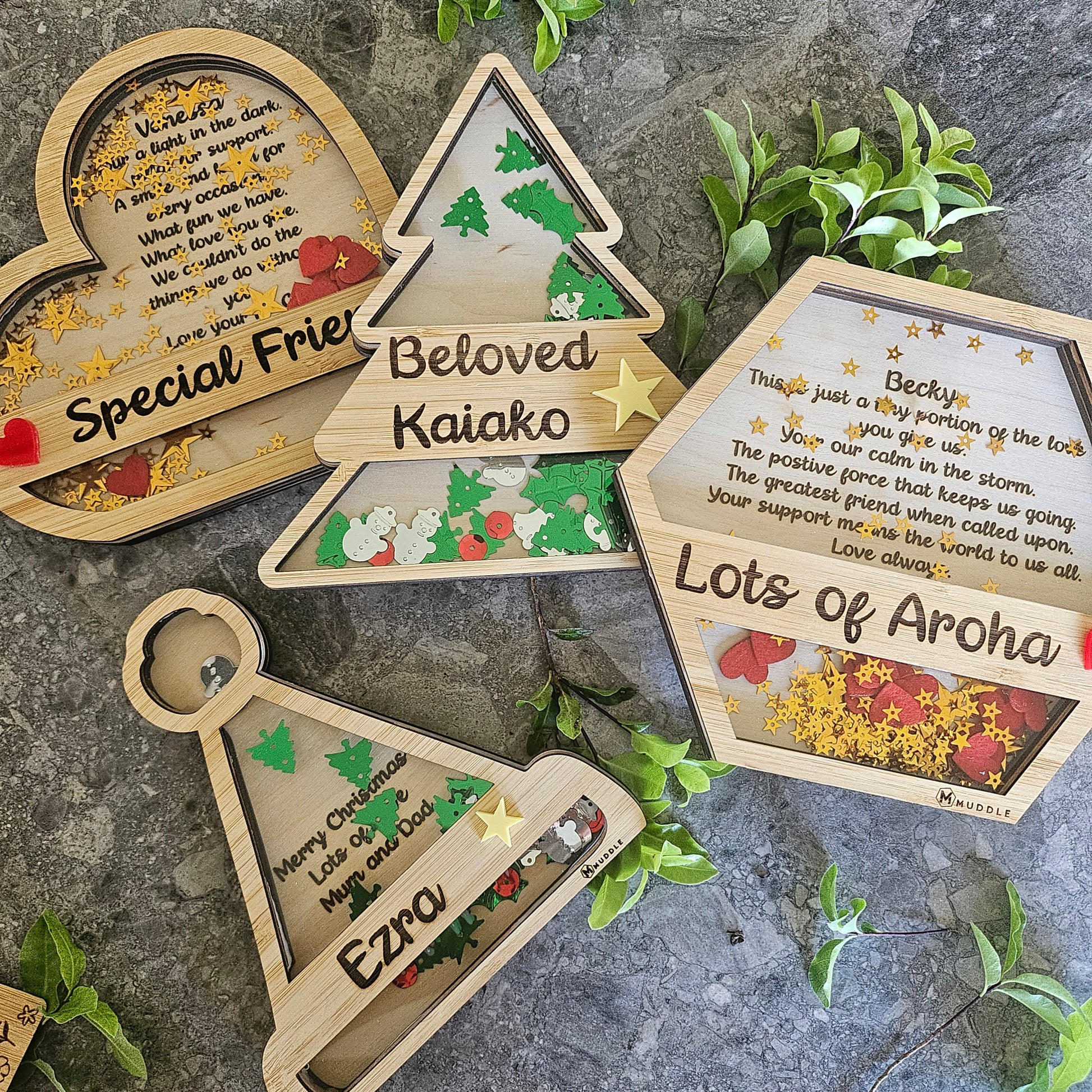 Shake up your gifting game with our Personalised Shakers! Choose from four festive designs—hexagon, sideways heart, Christmas tree, or Santa hat—each filled with delightful sprinkles or hearts and stars. Customise the front with a name or special message, and add a laser-engraved inscription inside for an extra personal touch. Perfect for desks, mantlepieces, or as a thoughtful gift for friends, teachers, mums, or anyone who deserves a sprinkle of joy. A playful present that's as unique as the person receiving it!