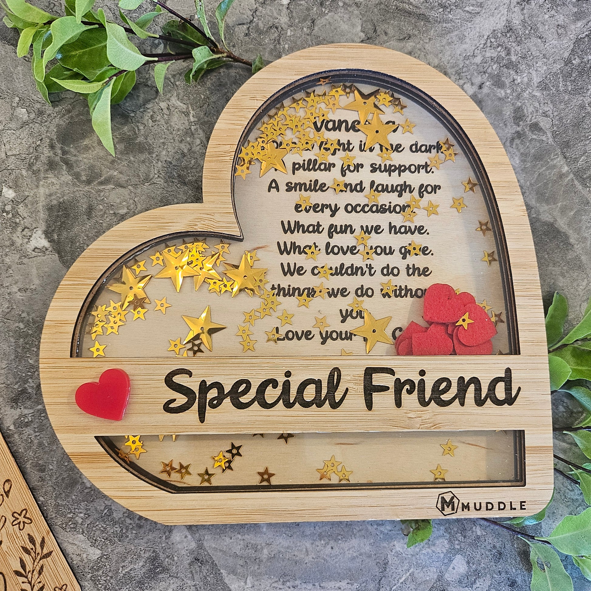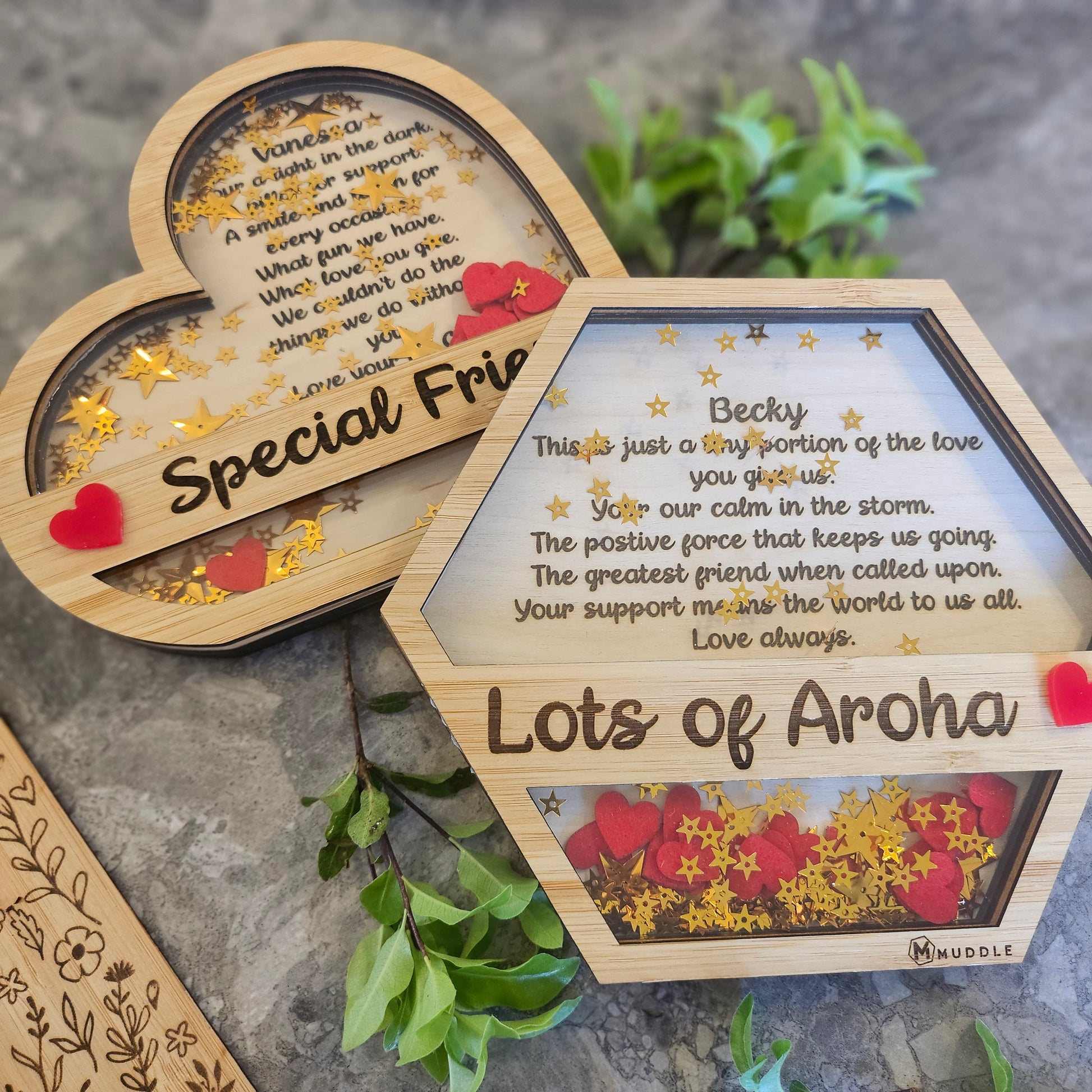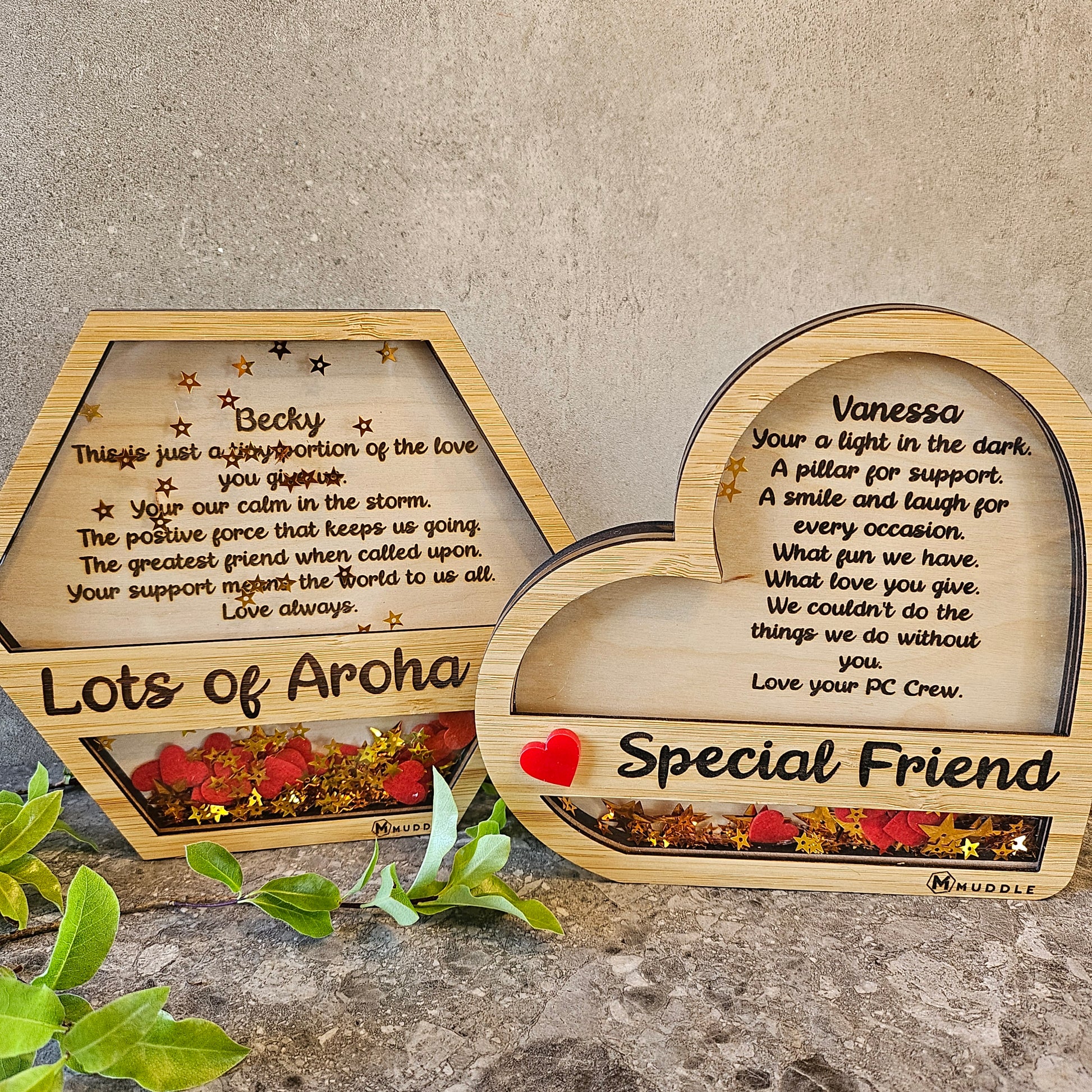 Shake up your gifting game with our Personalised Shakers! Choose from four festive designs—hexagon, sideways heart, Christmas tree, or Santa hat—each filled with delightful sprinkles or hearts and stars. Customise the front with a name or special message, and add a laser-engraved inscription inside for an extra personal touch. Perfect for desks, mantlepieces, or as a thoughtful gift for friends, teachers, mums, or anyone who deserves a sprinkle of joy. A playful present that's as unique as the person receiving it!