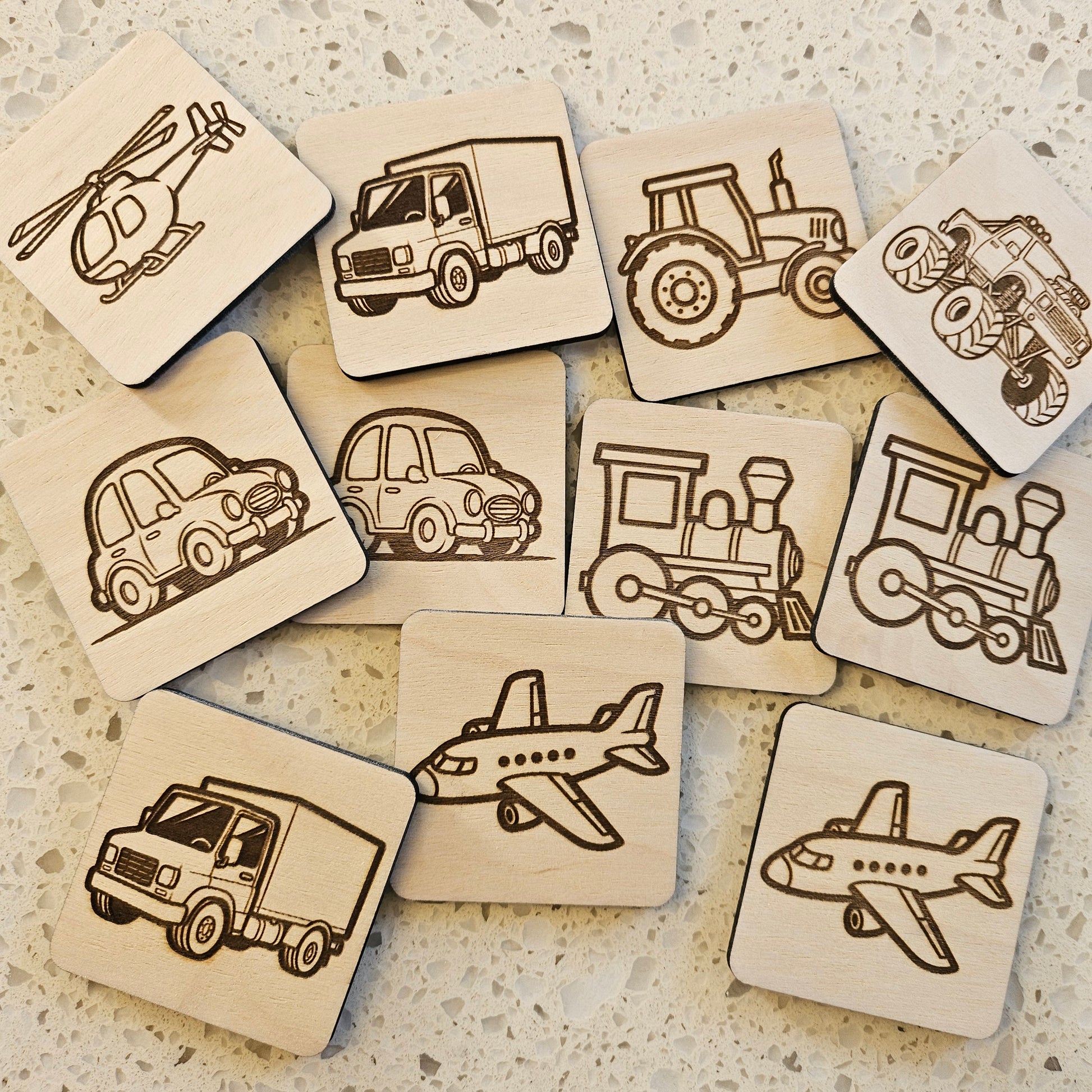 Discover endless fun with our Personalised Wooden Matching Tiles! Choose from 15 themed tiles—like transport, enchanted forest, or farm—and add 5 custom tiles featuring names, dates, or simple pictures you pick. With each tile doubled for matching play, you'll get 40 tiles in total, perfect for hours of joyful memory games with a personal touch.