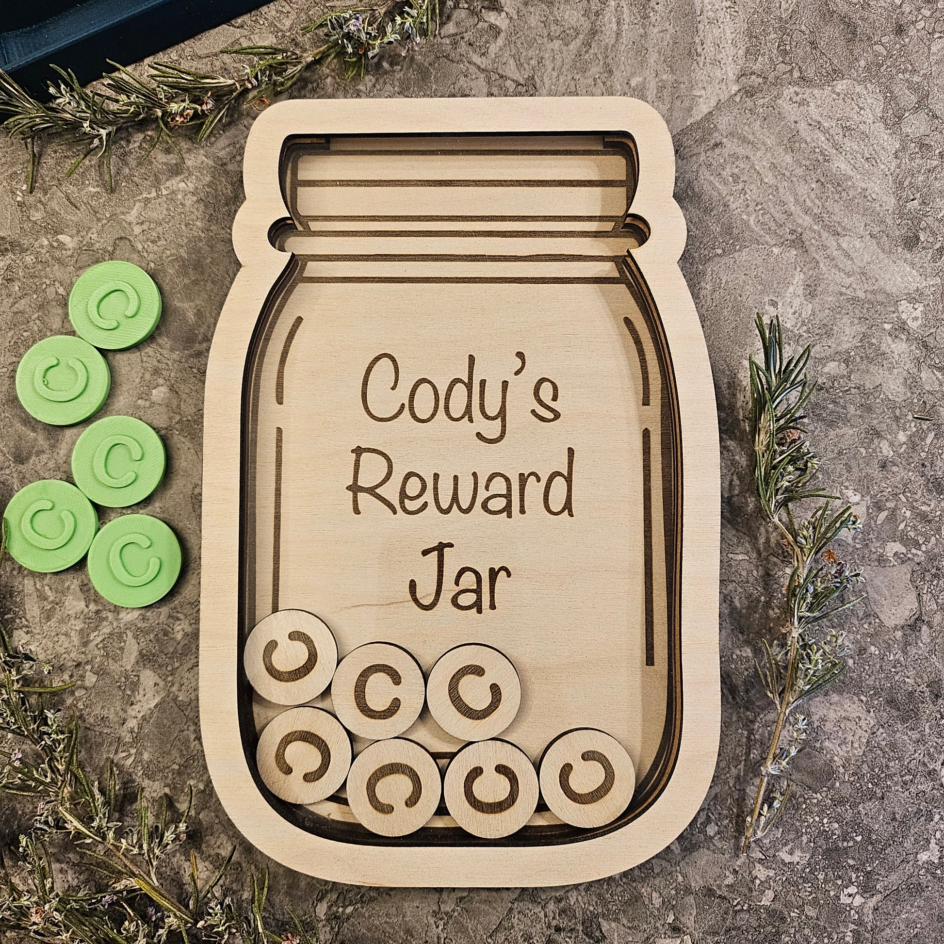 Make rewarding fun and personal with our customisable Reward Jar! Add a name for a special touch, then choose between 3D printed tokens or wooden tokens, each engraved with your chosen letter. It comes with a handy 3D printed stand to keep everything neat. Pair it with our reward menu to create a playful and motivating system everyone will love. Perfect for encouraging great behaviour or celebrating achievements in style!