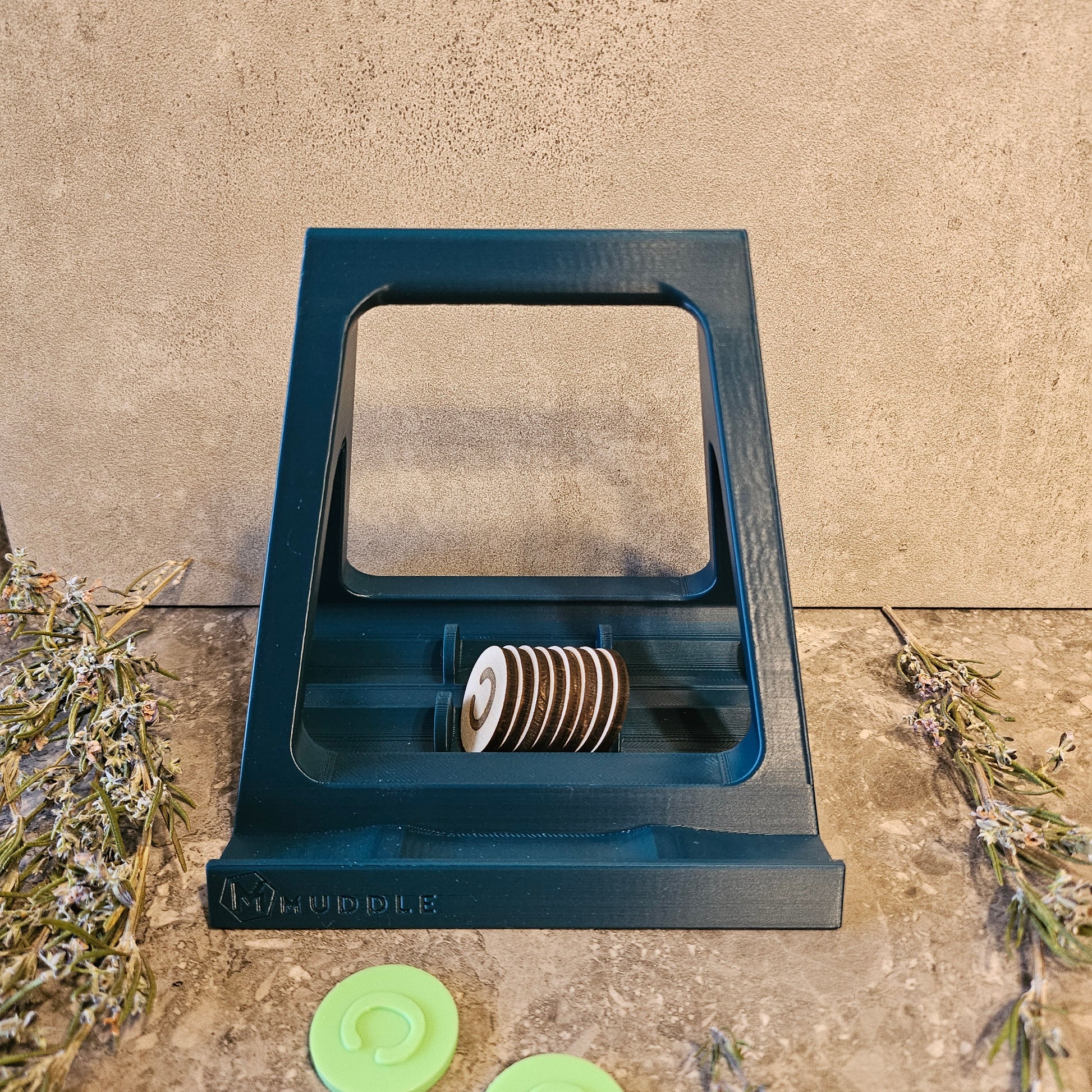 Comes with a 3d printed stand (your choice of colour) and either 3d printed alphabet tokens or wooden alphabet tokens.