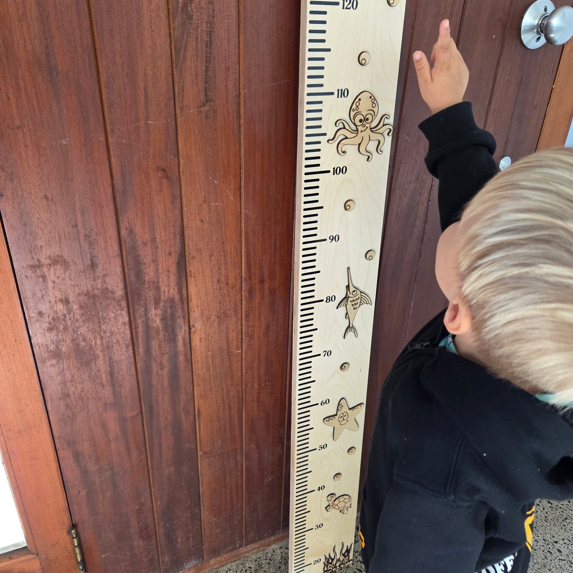 Track your little ones' growth with our Under the Sea Wooden Height Chart! Our laser-etched sea creatures add a playful touch to the Birch wood back. Customize the letters to spell out your family's name or simply spell out 'family'. A fun and unique addition to any home. (It's sure to be a "measure" of laughs too!)